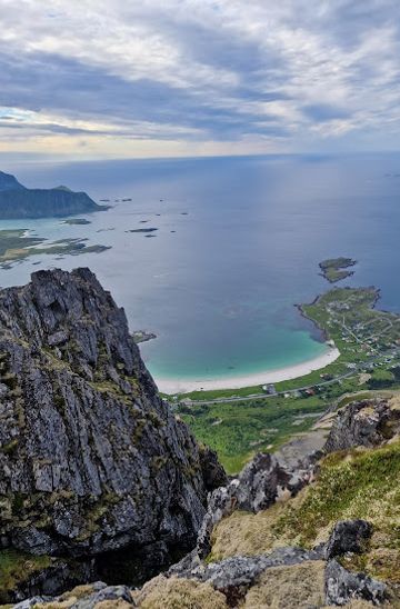 From Lofoten Islands, take E10 towards the town of Svolvær. Continue on E10 until you reach the village of Fredvang. From Fredvang, take the road towards Ytresand. Park your car at the designated parking area near Ytresand beach. From the parking area, follow the marked trail that leads to Moltinden. The hike to the summit takes approximately 2-3 hours.