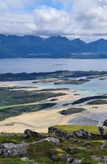 Discover the breathtaking views and adventure awaiting you at Sørskottinden, a stunning mountain peak in Norway's Leinesfjord region.