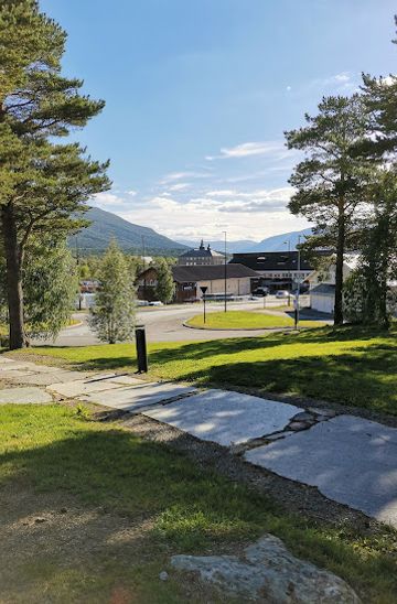 If you are traveling by car, begin from the center of Oppdal. Head south on Hovedgata (the main street) and turn left onto Høgmovegen. Continue straight for about 1 kilometer until you reach Høgvangparken located at Høgmovegen 6. There is free parking available near the park.