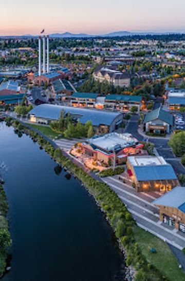 Explore the vibrant Old Mill District in Bend, Oregon, offering shopping, dining, and entertainment along the scenic Deschutes River.