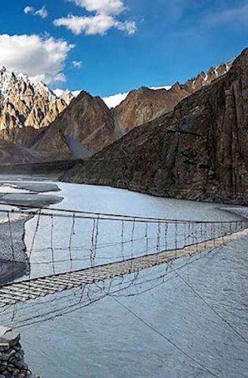 Experience the breathtaking views and exhilarating thrill of crossing the Hussaini Suspension Bridge in Gilgit, a top adventure destination in Pakistan.
