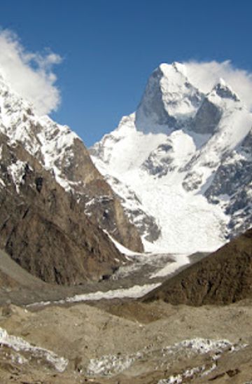 Muztagh Tower, a breathtaking peak in the Karakoram range, offers stunning views and challenging climbs for adventurous tourists. Experience the thrill of the ascent and the serene beauty of the surrounding landscapes.