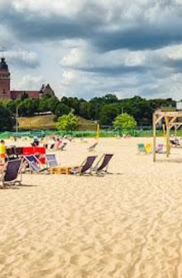 Szczecin Beach is a picturesque haven located on Wyspa Grodzka, offering stunning views of the Oder River, lush greenery, and a tranquil atmosphere perfect for relaxation and recreation. This urban beach is a favorite among locals and tourists alike, making it a must-visit destination.