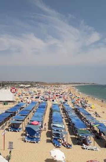 Tell me more about FaroExplore the stunning Praia Grande de Pêra Poente, a picturesque beach destination in the Algarve, perfect for relaxation and adventure.