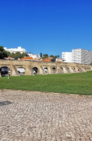 If you are starting from the Setúbal city center (Praça do Brasil), head south towards Avenida Luísa Todi. Walk along this avenue until you reach the intersection with Rua do Comércio. Turn left onto Rua do Comércio and continue straight until you reach the end of the street. At the end, turn right onto Rua da Saúde. Follow this road until you see a large intersection. Continue straight across the intersection onto Rua do Aqueduto, which will lead you directly to the Aqueduto de Setúbal.