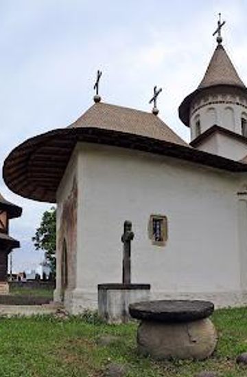To reach the Holy Cross Monastery Ensemble by public transport, go to the main bus station in Botoșani. Look for a bus heading towards Pătrăuți; these buses typically leave every hour. Once on the bus, inform the driver that you want to get off at the stop for the Holy Cross Monastery. The stop is close to the entrance of the monastery. After disembarking, walk a short distance to the entrance of the monastery, which is located at DJ208V 214.