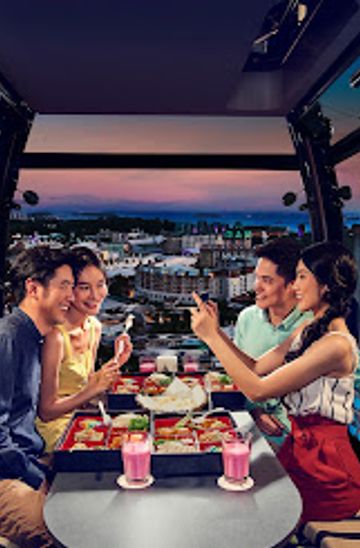 Indulge in exquisite cuisine amidst breathtaking views at Cable Car Sky Dining, Singapore's premier aerial dining destination.