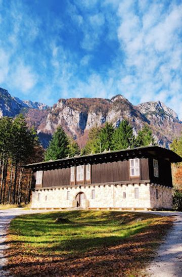 Start at the main square in Kamnik, known as Glavni trg. From the square, head north towards the main road, Šutna. Continue walking straight until you reach the intersection with the Kamnik Bistrica River on your left. Cross the bridge over the river, and turn right onto the path that follows the riverbank. This scenic route will lead you through the beautiful natural surroundings of Kamnik. Keep walking for about 1.5 kilometers until you reach a fork in the path. At the fork, take the left path that leads uphill towards Kamniška Bistrica. After about 500 meters, you will see the Plečnikov Dvorec on your left.