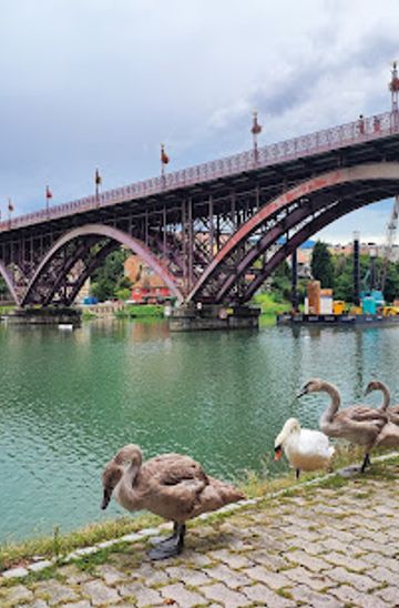 If you are in the Lent neighborhood, start by heading towards the main promenade along the Drava River. Walk east along the riverbank until you reach the junction with Glavni Most Street. The Stari Most (Old Bridge) is located right at Glavni Most, a short walk from the river. The bridge is well-signposted, so you can easily spot it as you approach.