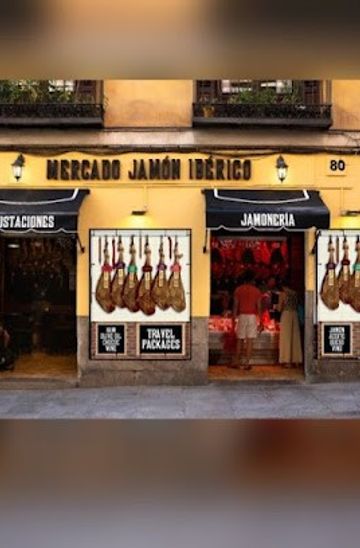 Calle Mayor's pedestrian-friendly vibe enhances the experience, linking Plaza Mayor to the Royal Palace. The building's classic Madrid facade blends seamlessly with the neighborhood's 17th-century architecture, creating a sense of timelessness. Mercado Jamón Ibérico captures the essence of Madrid's tapas culture, where casual indulgence meets gourmet quality. It's a spot where locals and travelers alike pause for an authentic taste of Spain's gastronomic heritage.Quality and Tradition Combined