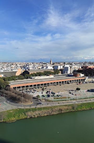 If you are staying in the Triana neighborhood, you can walk to Torre Schindler. Start from the 'Puente de Isabel II' (Isabel II Bridge) and cross over to the northern bank of the Guadalquivir River. Follow 'Avenida de la Constitución' and then turn right onto 'Avenida de los Descubrimientos'. Continue straight until you reach 'Edificio Torre Schindler I Cartuja, 1'. The walk will take approximately 30 minutes.