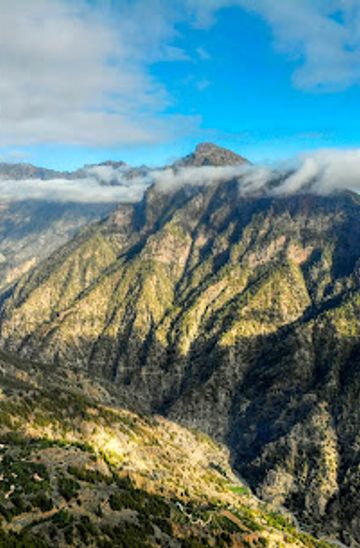 Discover the stunning panoramic views of Teide and lush landscapes at Mirador del Espigón del Roque in El Paso, Santa Cruz de Tenerife.