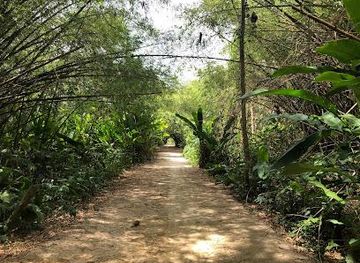 Explore the tranquil Palmtree Garden, an urban oasis in Paramaribo filled with lush greenery, cultural art, and serene walking paths.
