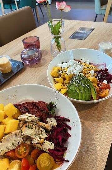 Fresco in Karlstad specializes in vibrant, customizable salads built on a fresh base of pickled red cabbage, cocktail tomatoes, black beans, red onion, and roasted broccoli-cauliflower mix. Toppings like prosciutto di Parma, herb-marinated chicken, saffron chicken, smoked salmon, hand-peeled shrimp, beetroot-halloumi patties, and avocado allow for personalized bowls starting from 159 SEK. Open weekdays 11am-5pm and weekends until 4pm, it offers healthy, flavorful meals in a casual setting perfect for quick lunches.
