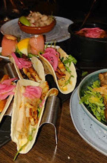 The tapas lineup spans classics and creative twists, perfect for mixing and matching. Start with datiles y tocino—bacon-wrapped dates bursting with sweet-savory contrast—or pimientos de Padrón, blistered green peppers topped with Manchego and sea salt. Seafood lovers indulge in fresh oysters, blinis, or vannamei prawns tossed in garlic, chili, and white wine. Vegetarian options abound, including fried cauliflower with lime emulsion, beetroot with chèvre, and halloumi tacos, ensuring broad appeal in every shared feast.Main Courses and Sweet Finishes