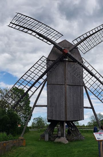 Kvarnkungen towers prominently on the ridge of Björnhovda, embodying the quintessential Öland windmill design known as the stubbkvarn. Unlike fixed structures, this type features an entire wooden house that pivots on a central oak stump to harness shifting winds, a clever adaptation to the island's breezy climate. Built in the traditional manner, its robust sails and weathered timbers speak to centuries of craftsmanship perfected by local farmers.Almost every farmer on Öland once owned such a mill, grinding grain into flour to sustain communities through harsh winters. Kvarnkungen, the largest of its kind in Scandinavia, preserves this vital legacy, standing as a sentinel where rural roads converge overlooking Färjestaden.Engineering Marvel of Wood and Wind