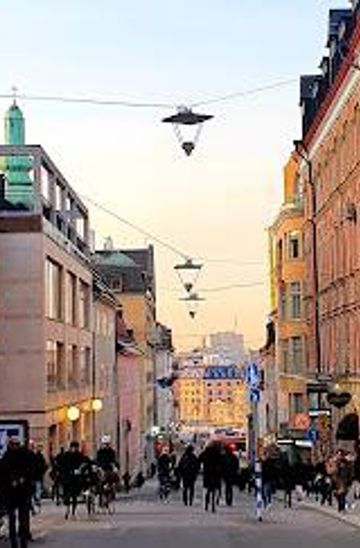 Flanking the backen, Stockholm City Museum anchors the north end, while Medborgarplatsen square interrupts midway with Söderhallarna market halls and the iconic Skatteskrapan, one of Sweden's first skyscrapers formerly housing tax offices, now student housing and dining atop with panoramic views. Nearby, Mosebacke terraces offer drinks with vistas, and parks like Björns trädgård add green respite.Vibrant Street Life and Transformations