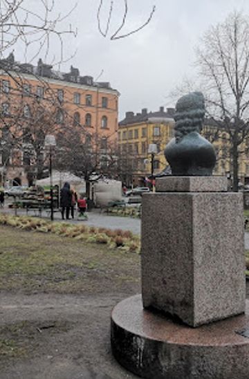 If you are further away in Södermalm, you can take the Metro (Tunnelbana). The nearest station is Mariatorget (green line). Once you exit the station, follow the signs leading to Mariatorget Square. After exiting the station, turn left, walk for about 5 minutes, and you will reach the statue located at Mariatorget 4. Please note that a single trip on the Metro costs approximately 44 SEK for adults.