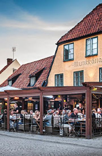 Housed beneath 12th-century stone vaults in central Visby, Munkkällaren combines a medieval cellar atmosphere with several bars, a restaurant and late-night club spaces; expect candlelit arches, seasonal menus and a lively evening program that moves from relaxed dinners to dance floors as the night deepens. The venue suits groups, locals and visitors seeking historic character with modern nightlife energy.