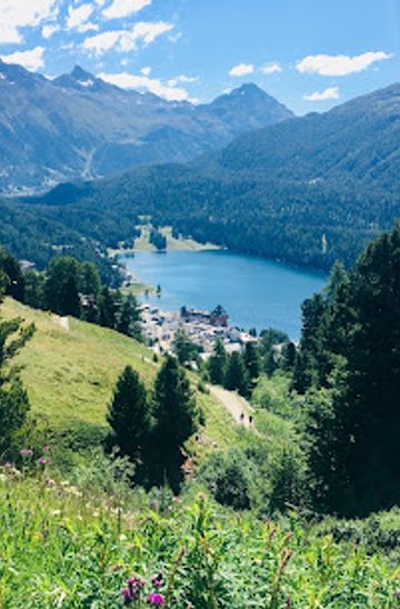 If you're already in the St. Moritz area and prefer to walk, start from the main pedestrian area, and head towards Via Maistra. Continue straight until you reach Via Salastrains. This walk is approximately 1.5 kilometers and should take about 20 minutes. Enjoy the scenic views along the way!