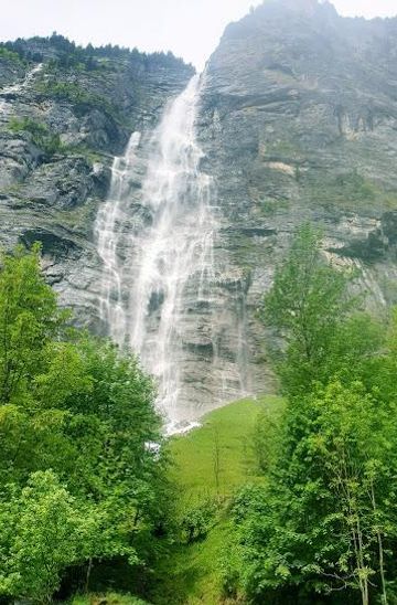 Experience the breathtaking beauty of Mürrenbachfall, a stunning waterfall in the heart of Lauterbrunnen Valley, Switzerland.