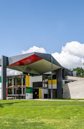 Explore the Pavillon Le Corbusier in Zurich, where modern architecture meets captivating art exhibitions, set against stunning scenic views.