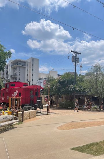 If you have access to a bike, start at Klyde Warren Park, which is about a mile away from The Katy Trail Train Statue. Head north on the trail that runs along the park, continue on the Katy Trail, and follow the signs for Maple Ave. As you approach 3102 Maple Ave, you will find The Katy Trail Train Statue on your left.