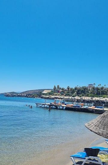 Gümbet Beach in Bodrum is a stunning public beach offering pristine sands and crystal-clear waters, perfect for sunbathing, swimming, and enjoying beachside activities. Visitors can unwind in a picturesque setting, with a vibrant atmosphere filled with local cafes and water sports. The beach is an ideal spot to relax or partake in various recreational activities, making it a must-visit destination for tourists.