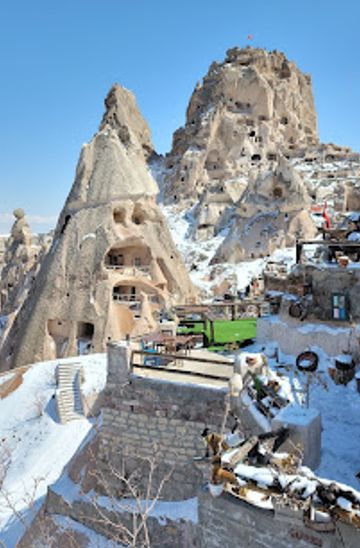 From Göreme, take the local bus (Dolmuş) to Uçhisar. The bus stop is located near the main square in Göreme. The bus runs frequently, approximately every 30 minutes, and the journey takes around 15 minutes. Once you arrive in Uçhisar, get off at the last stop. Uchisar Castle is a short walk from the bus stop; head up the main road, and you will see the castle ahead. It's about a 10-minute walk.