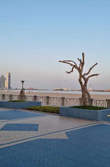 If you are already in the Corniche area, simply walk towards the waterfront. Head towards the Corniche Road, which runs parallel to the beach. As you walk, you will see various parks and recreational areas. Keep heading West along the Corniche Road until you reach the intersection with 1st Street. Cross the street at the designated pedestrian crossing and continue straight. The Corniche Sea Side is located right by the beach, where you can enjoy beautiful views of the Arabian Gulf.