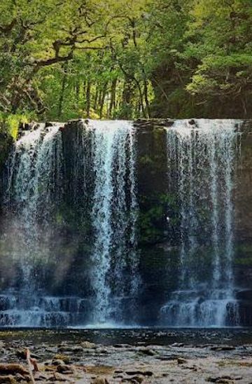 Discover the serene tiered cascade of Sgwd y Pannwr, a scenic highlight of the Four Waterfalls Walk in Wales’ Brecon Beacons National Park.