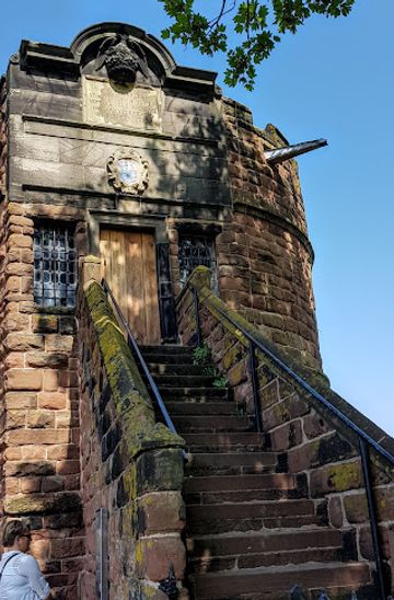Perched on the northeast corner of Chester's medieval city walls, King Charles Tower is a Grade I listed monument dating to the 13th century. This 70-foot red sandstone semicircular tower played a pivotal role during the English Civil War and the Siege of Chester in 1645. Legend claims King Charles I watched his army's defeat at the Battle of Rowton Heath from this vantage point on 24 September 1645, though historians debate this account. The tower features four levels, battlemented parapets, slit windows, and a distinctive phoenix plaque commemorating the Painters Guild's restoration in 1613. Today it stands as a testament to Chester's rich medieval heritage and remains accessible to visitors walking the city walls.