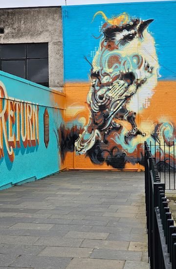 From Alloa train station, a 10-15 minute walk on mostly flat terrain leads to Drysdale Street where the mural is located. The station is well-serviced with regular trains from Stirling and Edinburgh. Walking is accessible and suitable for most visitors.