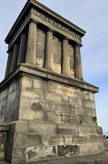 Elegant neoclassical memorial on Calton Hill honoring mathematician John Playfair, designed by architect William Henry Playfair with stunning Edinburgh views.