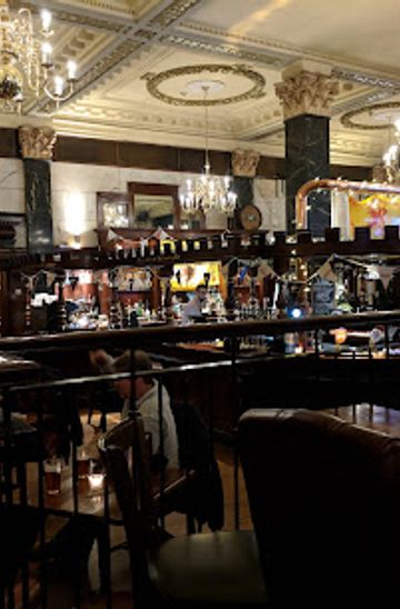 Traditional Glasgow gastropub in a historic bank building, famed for its ales, hearty pies, and welcoming city centre vibe.