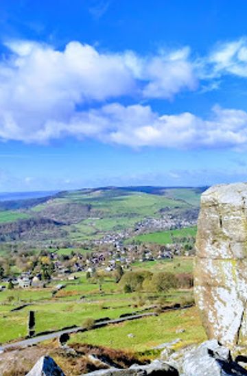 Gritstone escarpment offering world-class climbing, panoramic Peak District views, and accessible moorland walks.
