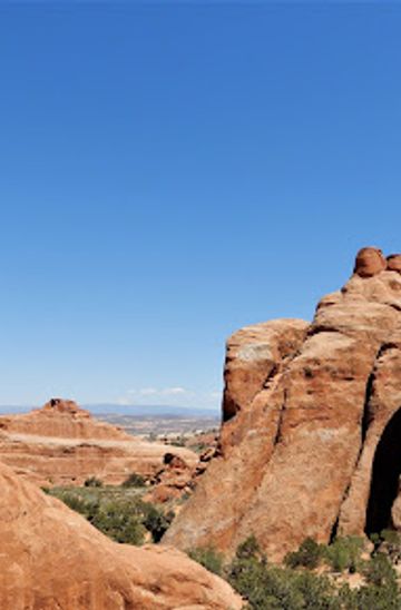 If you are using public transportation, check for shuttle services that operate within Arches National Park. You can take a shuttle to the Devil's Garden area. Once you arrive at the Devil's Garden Trailhead, follow the signs to the Landscape Arch, which is about a 1.6-mile walk along the scenic trail.