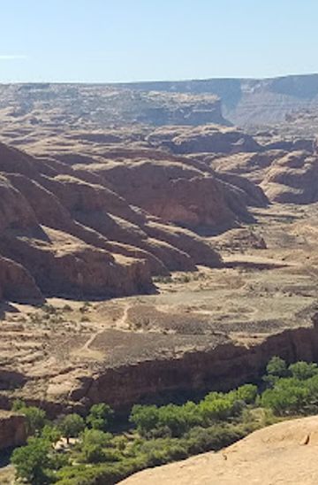 From downtown Moab, head south on Main Street toward 400 South. Continue on Main Street until you reach the intersection with 500 South. Turn left onto 500 South and walk until you reach the entrance of the Moab Valley Multisport. From there, follow the bike path heading east toward the Colorado River. After about 1 mile, you will see signs for the trail leading to Little Arch on your right. Follow the marked trail for approximately 1.5 miles, which will take you directly to Little Arch.