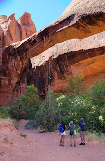 If you're up for a hike, take the Moab Canyon Pathway as described above. After reaching the fork, take the left towards Kane Creek Road. You'll then need to switch to the 'Morning Glory Arch Trail.' Hike this trail for about 1.5 miles, keeping an eye out for trail markers. This route will lead you directly to the arch, where you can enjoy the view and take photos.