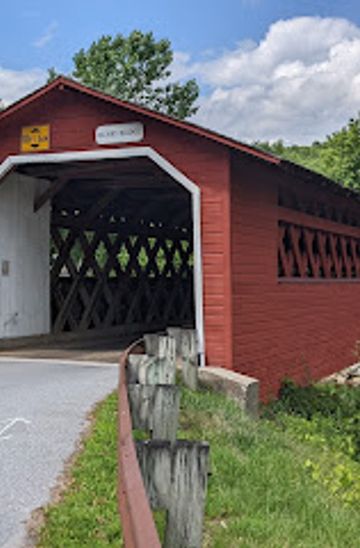 Take the Green Mountain Express bus from the Bennington Depot located at 737 Main St. Board the bus heading towards North Bennington. Stay on the bus for about 15 minutes until you reach the stop closest to River Rd. Once you disembark, walk along River Rd for about 0.5 miles, and you will find the Henry Covered Bridge on your left at 475 River Rd.