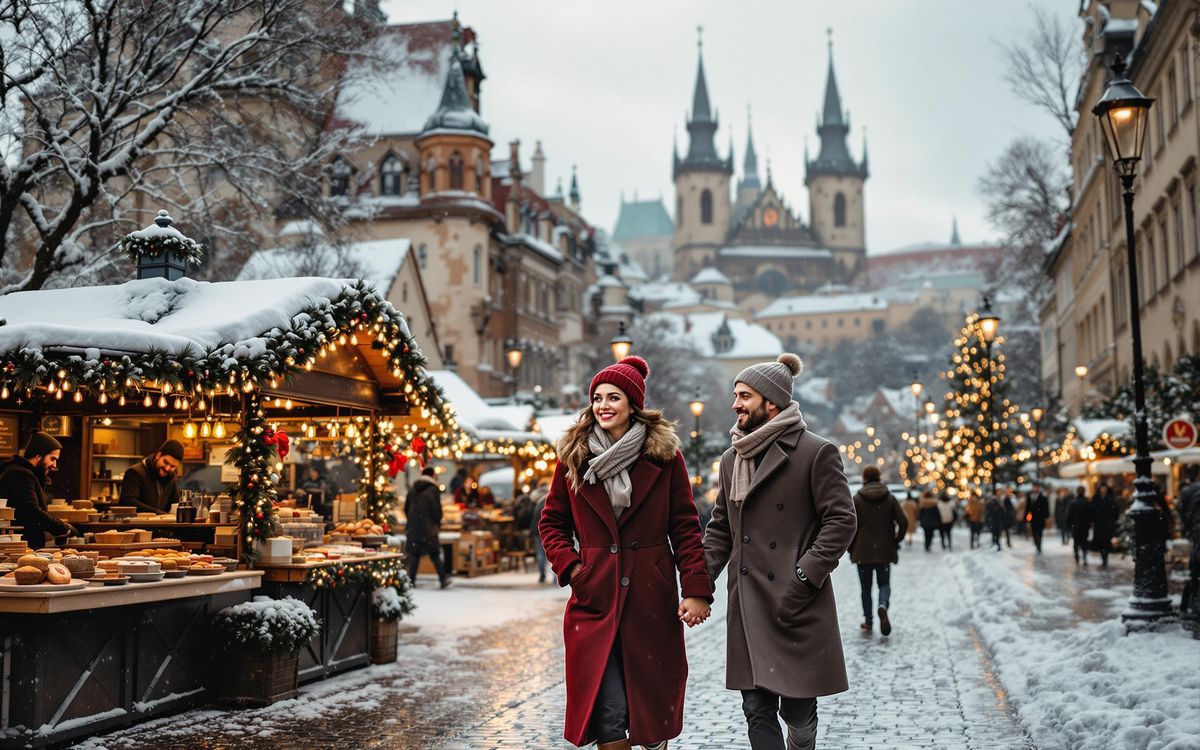 As winter descends, Prague unveils a captivating charm, draping its ancient streets and Gothic spires in a blanket of snow. The city's rooftops glisten with a dusting of white, creating a picture-perfect scene straight out of a fairytale. The aroma of chimney cakes and mulled wine fills the air, beckoning you to explore the enchanting Christmas markets in Old Town Square and Wenceslas Square, open from November 30th to January 6th, transforming the heart of the city into a viant winter wonderland. The markets offer a treasure trove of traditional Czech crafts, delectable treats, and warming beverages, perfect for cozying up with your loved one.