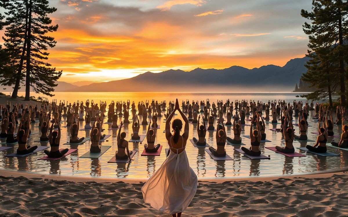 The day begins before dawn. A hush falls over Commons Beach in Tahoe City as silhouettes gather, facing the awakening sun. The air, crisp and clean, carries the scent of pine from the surrounding forests. A gentle eeze whispers across the surface of Lake Tahoe, its waters reflecting the first blush of dawn. This is the opening yoga session of the Wanderlust Festival, a moment of collective intention-setting led by experienced instructors who understand the profound connection between nature and inner peace.