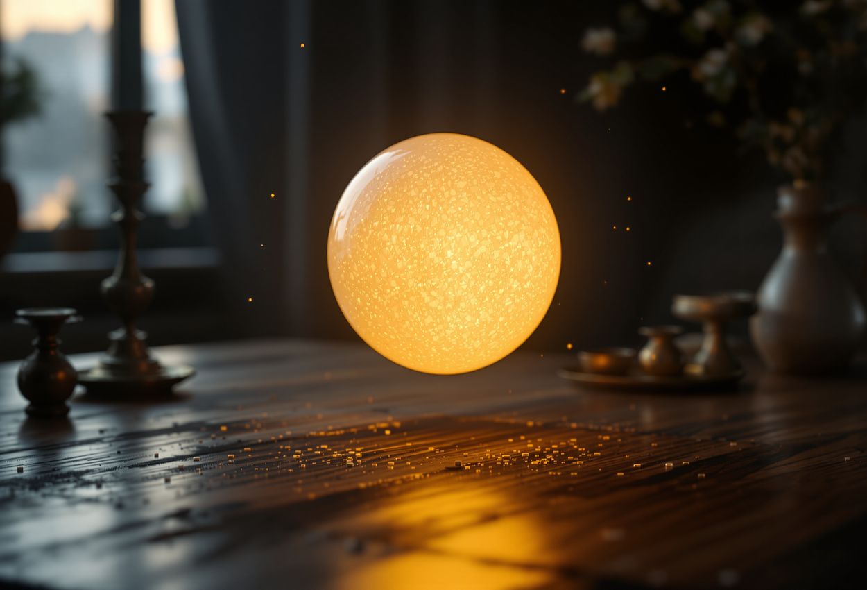 Image Description: A close-up shot of a digital photograph displaying a potential paranormal anomaly. The anomaly is a spherical light orb floating in the air, with a soft, diffused glow. The background is a dimly lit room with various objects scattered throughout, creating a sense of mystery. Style Instructions: The photo should be taken with a macro lens to capture the details of the anomaly. The lighting should be dim and focused on the anomaly, highlighting its unique characteristics. The date of the photo is October 31, 2025, emphasizing the potential for capturing such anomalies during Halloween ghost hunts.
